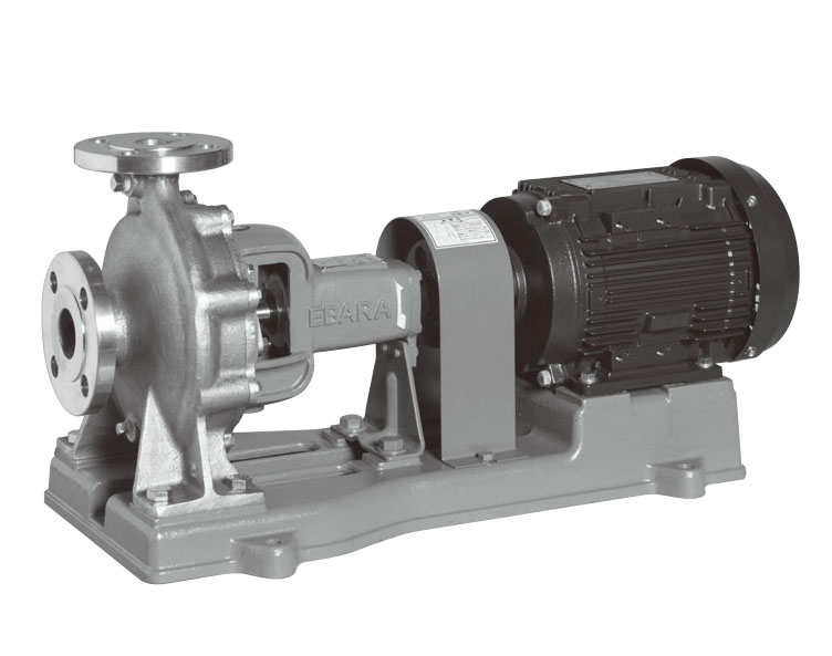 FSS型 ステンレス 渦巻 【用途】①化学液 ②産業 用③工業用水 ④給湯 【特長】①ステンレス製なので、化学液にも使用できます。②小形軽量化を追及した2極形、および4極形をシリーズ化しております。③吸込、吐出し配管や、保温、保冷材を外すことなく分解・点検ができるBPO(Back Pull Out)形です。④吐出し口がケーシングの中心上にあり、しかもケーシングに脚が付いているので、配管荷重に強い構造です。液名 清水・油・化学液 液温 0~100℃ 粘度10mPa・s(cP)以下 密度0.7~1.0O/L 吸込全揚程 (選定図吐出し量範囲内にて)-6m(20℃)(2極形の口径100×80は-3m)標準許容押込圧力 要目表をご覧ください。羽根車 クローズド 軸封 グランドパッキン 軸受 密封玉軸受 フランジJIS 10K形(並)ケーシングSCS13羽根車SCS13主軸SUS304軸スリーブ SUS304 電動機 三相 200V全閉外扇形・IP44(屋内)IE3(プレミアム効率) 設置場所 屋内