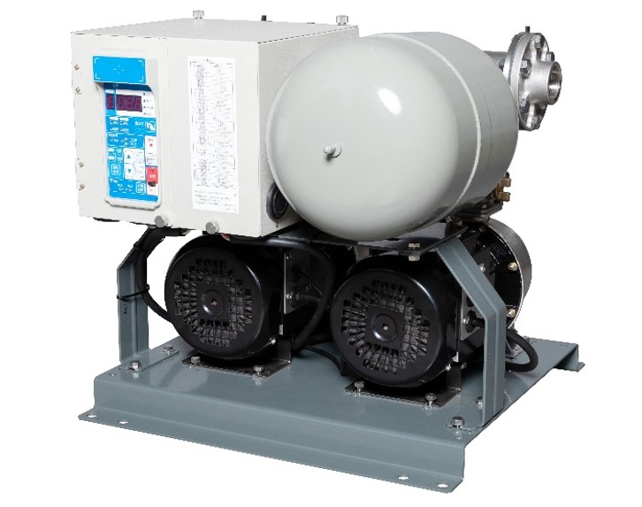 型式説明 【特長】 ①ダウンサイジング、ライトウェイト PMモータとインバータの一体化技術により、従来品より設置面積を32%削減、質量を44kg削減。②設置自由度アップ 設置状況に合わせた吐出し口方向の選択が可能。制御盤の設置方向や、別置き、壁掛けなどの自由なレイアウトが可能。③省エネルギー運転 高効率モータとEモード運転(※1)により、ランニングコストを低減。※1:Eモード運転 操作パネルのEボタンを押すだけで、運転状態を監視しながら最低圧力と小水量停止時間を最適制御する省エネ運転に切り替わります。④スマート運転管理 専用アプリをインストールしたスマホを操作パネルにタッチするだけで給水ユニットの運転状態を確認。