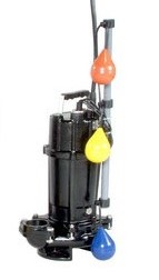 DVSJ型(自動交互内蔵形) セミボルテックス 汚水・汚物用水中ポンプ 製品紹介 ①セミボルテックスポンプなので、口径の40~63%程度の大きさの異物を含む液に使用できます。②通過固形物径が大きいので、小規模合併処理浄化槽の原水移送用に最適です。③電動機保護装置の内蔵により、過負荷・拘束・欠相による電動機の焼損を防止します。④着脱装置を使用すると、据付・引上げ・保守点検が容易です。⑤自動運転形(DVSA型)、自動交互運転形(DVSJ型)を使用すると、電源を接続するだけで、自動運転ができます。用途 ①小規模合併処理浄化槽の原水移送用②雑排水・設備排水③雨水・湧水排水